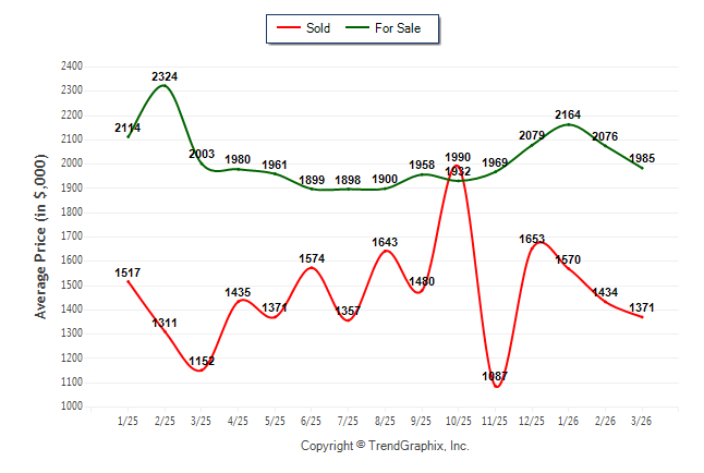 March 2026 Average For Sale Price was Neutral and Average Sold Price was Depreciating**