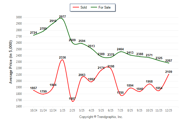 December 2025 Average For Sale Price was Depreciating and Average Sold Price was Appreciating**