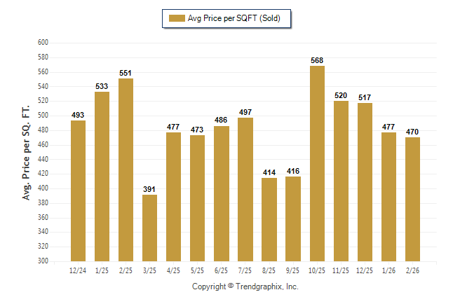 February 2026 Average Sold Price per Square Footage was Depreciating**