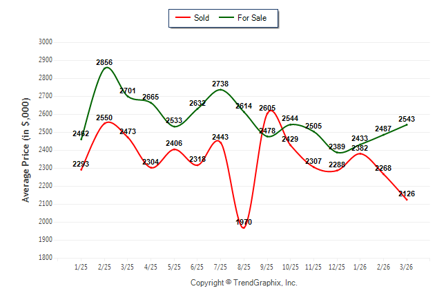 March 2026 Average For Sale Price was Appreciating and Average Sold Price was Depreciating**