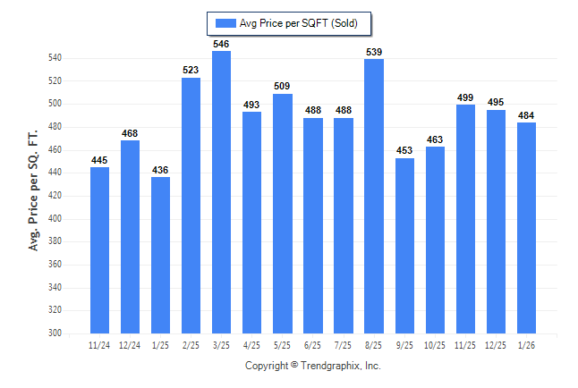 January 2026 Average Sold Price per Square Footage was Neutral**