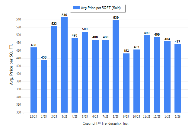 February 2026 Average Sold Price per Square Footage was Neutral**