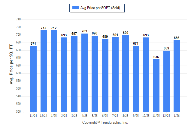 January 2026 Average Sold Price per Square Footage was Neutral**