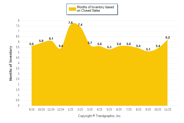 Curnt vs. Same Month 1 Yr Ago: Months of Inventory (Closed Sales)