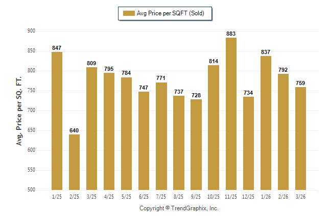 March 2026 Average Sold Price per Square Footage was Depreciating**