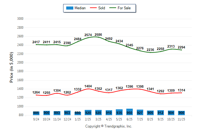 November 2025 Median Price was Depreciating, Avg. For Sale Price was Neutral, and Avg. Sold Price was Neutral**