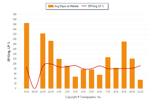 November 2025 Average Days on Market trend Remains Steady and Sold/Original List Price Ratio Remains Steady**