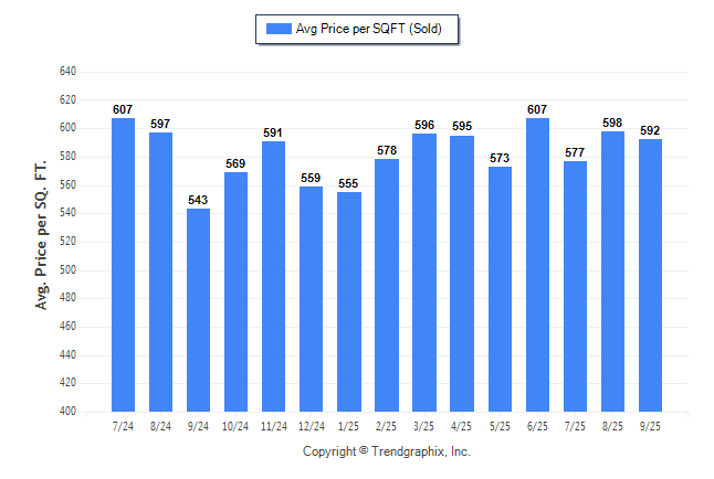 September 2025 Average Sold Price per Square Footage was Neutral**
