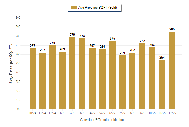December 2025 Average Sold Price per Square Footage was Appreciating**