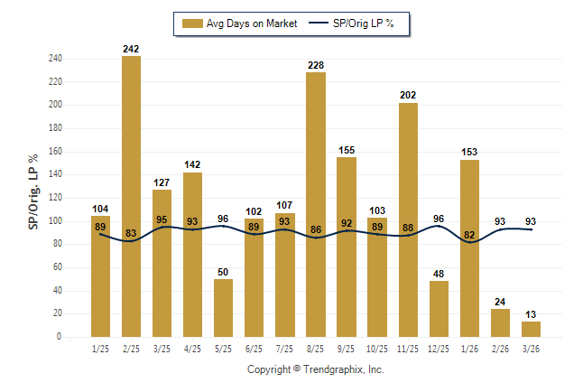 March 2026 Average Days on Market trend was Falling and Sold/Original List Price Ratio was Rising**