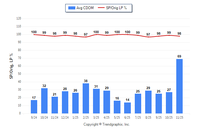 November 2025 Average Continuous Days on Market trend was Rising and Sold/Original List Price Ratio was Falling**