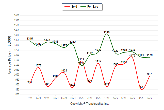September 2025 Average For Sale Price was Depreciating and Average Sold Price was Neutral**