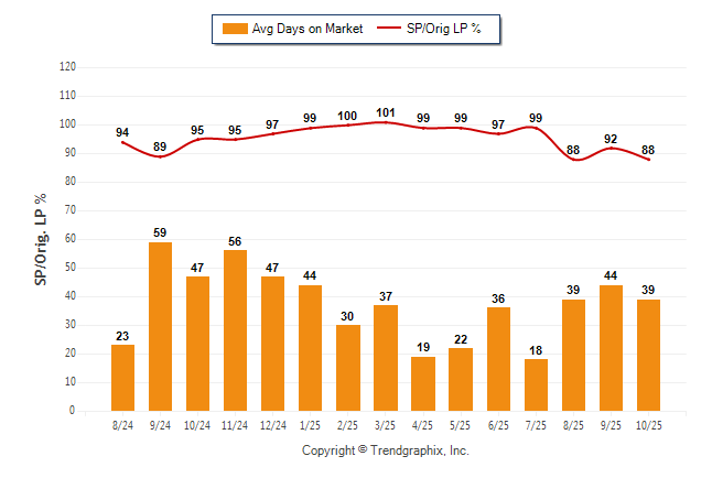October 2025 Average Days on Market trend Remains Steady and Sold/Original List Price Ratio was Falling**