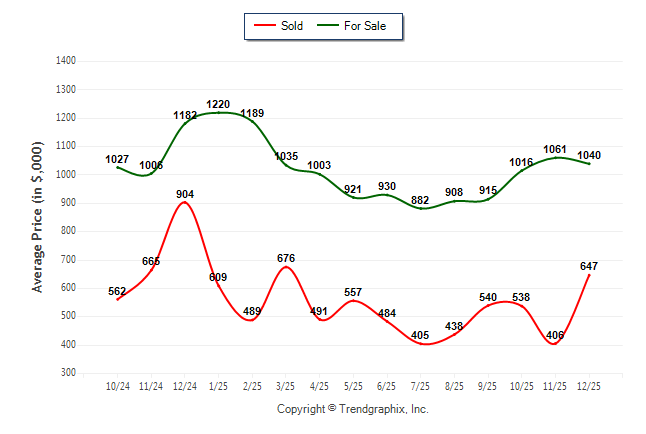 December 2025 Average For Sale Price was Neutral and Average Sold Price was Appreciating**