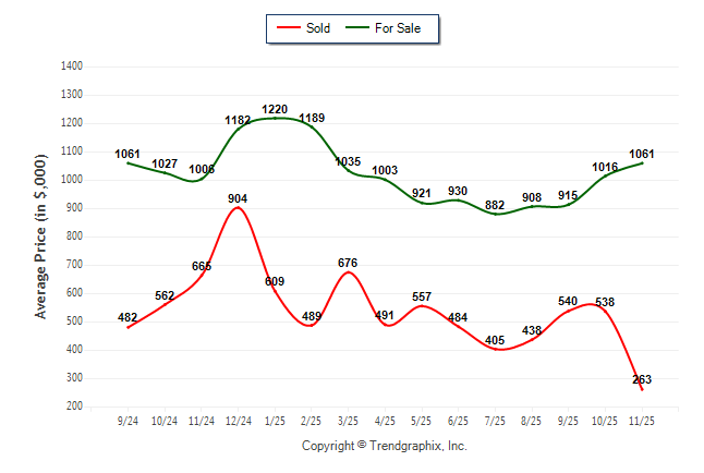 November 2025 Average For Sale Price was Appreciating and Average Sold Price was Neutral**