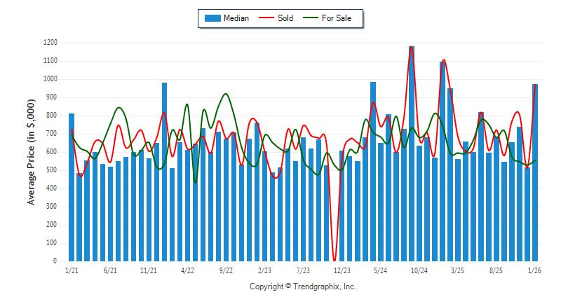 January 2026 Median Price was Appreciating, Avg. For Sale Price was Neutral, and Avg. Sold Price was Appreciating**