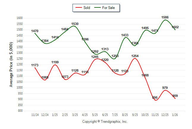 January 2026 Average For Sale Price was Neutral and Average Sold Price was Neutral**