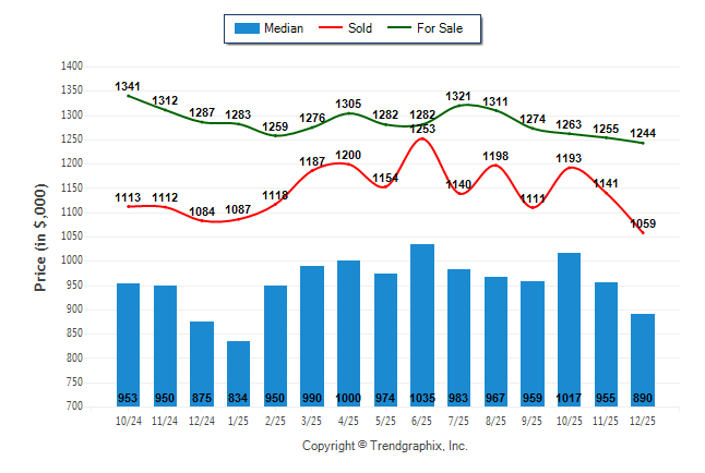 December 2025 Median Price was Depreciating, Avg. For Sale Price was Depreciating, and Avg. Sold Price was Depreciating**
