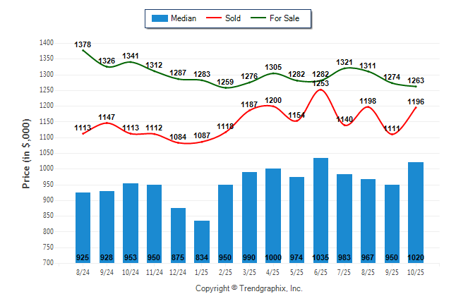 October 2025 Median Price was Neutral, Avg. For Sale Price was Depreciating, and Avg. Sold Price was Neutral**