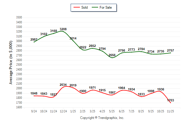 November 2025 Average For Sale Price was Neutral and Average Sold Price was Depreciating**