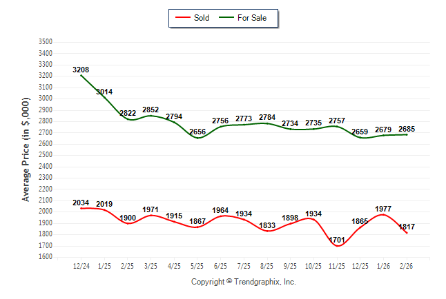 February 2026 Average For Sale Price was Neutral and Average Sold Price was Neutral**