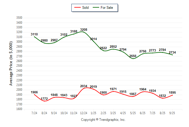 September 2025 Average For Sale Price was Neutral and Average Sold Price was Neutral**