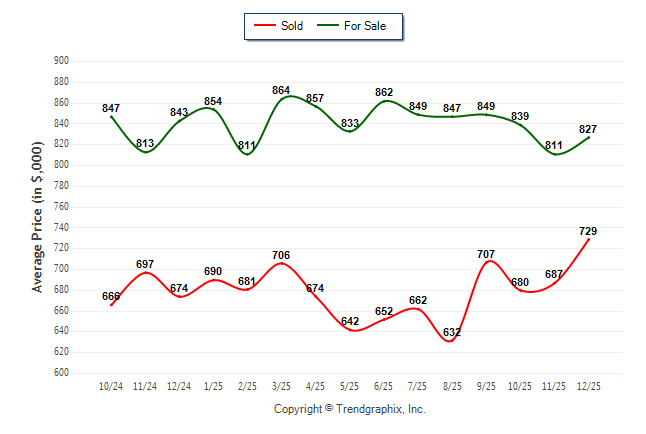 December 2025 Average For Sale Price was Neutral and Average Sold Price was Appreciating**