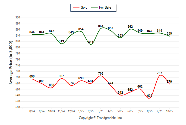 October 2025 Average For Sale Price was Depreciating and Average Sold Price was Neutral**