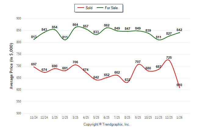 January 2026 Average For Sale Price was Neutral and Average Sold Price was Neutral**