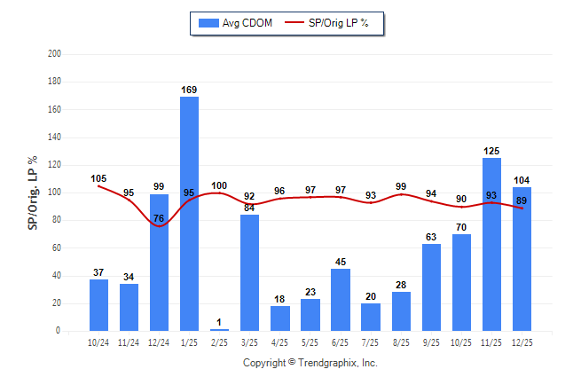 December 2025 Average Continuous Days on Market trend Remains Steady and Sold/Original List Price Ratio was Falling**