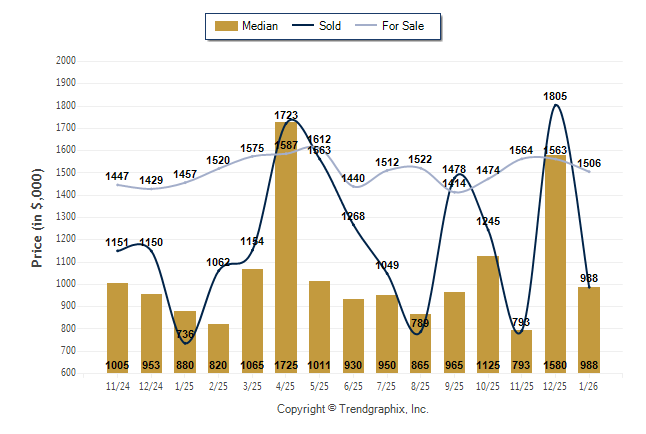 January 2026 Median Price was Neutral, Avg. For Sale Price was Neutral, and Avg. Sold Price was Neutral**