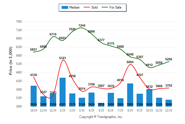 December 2025 Median Price was Depreciating, Avg. For Sale Price was Neutral, and Avg. Sold Price was Neutral**