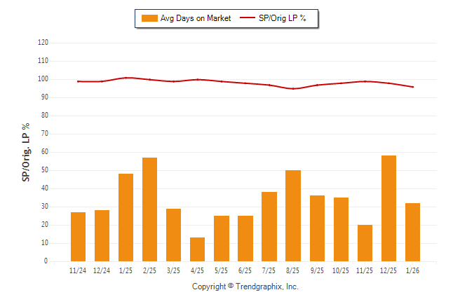 January 2026 Average Days on Market trend Remains Steady and Sold/Original List Price Ratio Remains Steady**