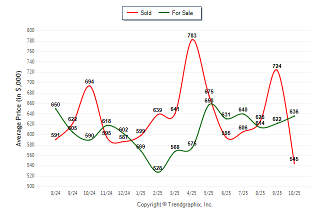 October 2025 Average For Sale Price was Neutral and Average Sold Price was Neutral**