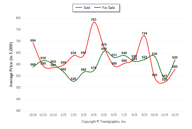 December 2025 Average For Sale Price was Neutral and Average Sold Price was Neutral**